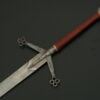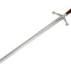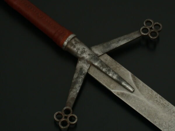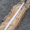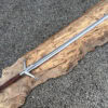 The first sword shown here has a centre ground & fullered blade, stainless steel fittings, ash grip with a wrap and stitch binding in dark brown suede.