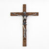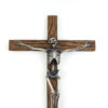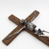 A miniature crucified skeleton in Bronze nailed onto an oak cross. This sculpture is being produced in two numbered limited editions.