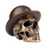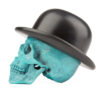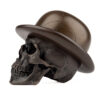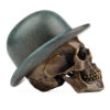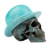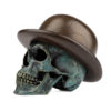 This City Gent is cast in Bronze with a Bronze Bowler Hat. Numbered limited editions of 25 skulls in five finishes, Blackened, Darkened, Polished, Verdigris and Cyan.