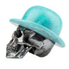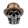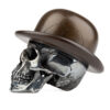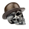 The Bowler Hat is also lost-wax cast in bronze with a blackened or patinated finish, there are four standard patina options to choose from. The hat can be plain but is also available with hand carved suture detail representing the bone plates of a skull.
